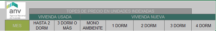 Por ejemplo, si el valor tope para una vivienda usada de 2 dormitorios en Montevideo fuera de (supongamos) UI 1.000.000, esa sería la cifra referencial que no se puede superar para que el crédito sea elegible con garantía FGCH. Este tope cambia de acuerdo al tipo de vivienda (nueva/promovida versus usada), la zona geográfica, la cantidad de dormitorios, etc.