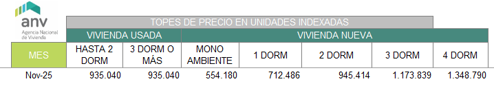 Para el mes de noviembre de 2025, según datos actualizados de la tabla que manejas, el valor tope para la vivienda (dependiendo del tipo, zona, dormitorios) es…